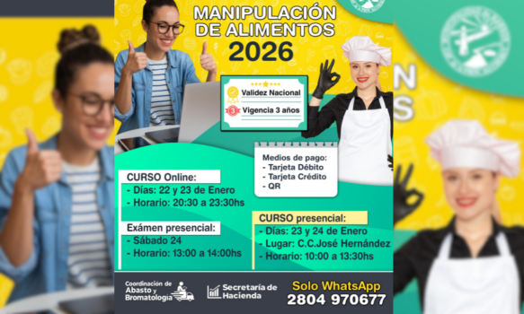 Los interesados podrán abonar el curso mediante tarjeta de débito, crédito o QR, facilitando así el proceso. Para obtener más información o completar el registro, deberán comunicarse exclusivamente por WhatsApp al número 2804 970677 o acercarse a la oficina de la Coordinación de Abasto y Bromatología, ubicada en Avenida Libertad y Morel, de lunes a viernes, entre las 7:00 y las 19:00 hs.