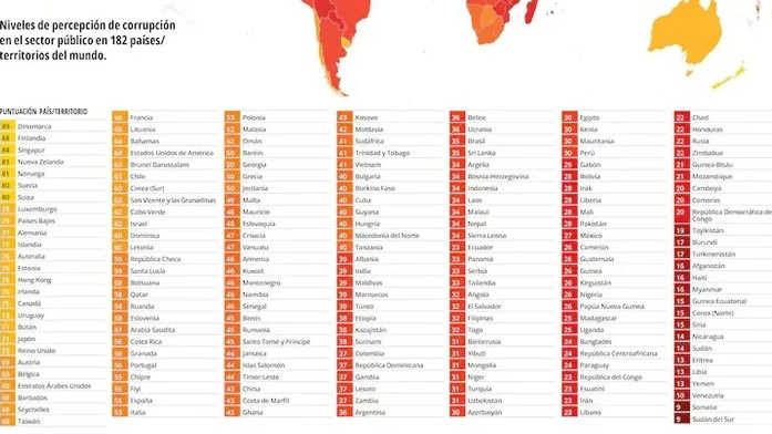El Índice de Percepción de la Corrupción (IPC) es la clasificación global de corrupción más utilizada en el mundo, ya que mide el grado de “corrupción percibida” por expertos y empresarios en el sector público de cada país.