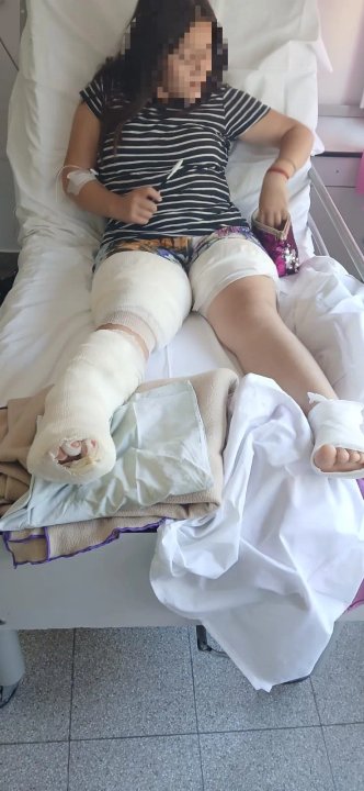 Natasha tiene quemaduras en las piernas, en la parte frontal y la inferior, y en el pie derecho, que resultó el más afectado