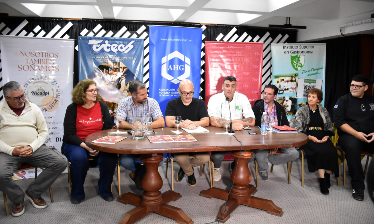 Durante el lanzamiento oficial, realizado este viernes en la sede de la Cámara de Industria y Comercio del Este del Chubut, estuvieron presentes el coordinador de Eventos de la Municipalidad de Trelew, Walter Labour; el presidente de la CICECh, Andrés Koss; el presidente y el secretario de la Asociación Hotelera y Gastronómica (AHG), Germán Scandroglio y Marcelo Díaz, respectivamente; la directora del Centro de Día NICADPI, Liliana Sauter; y la presidenta de la Cooperadora del Hospital Zonal, Lucía Vallejos. También participaron Juan Pablo López, jefe de profesores del Instituto Superior de Gastronomía, y Franco Pérez, director del Instituto Culinaria y miembro de la Asociación Gastronómica Argentina.
